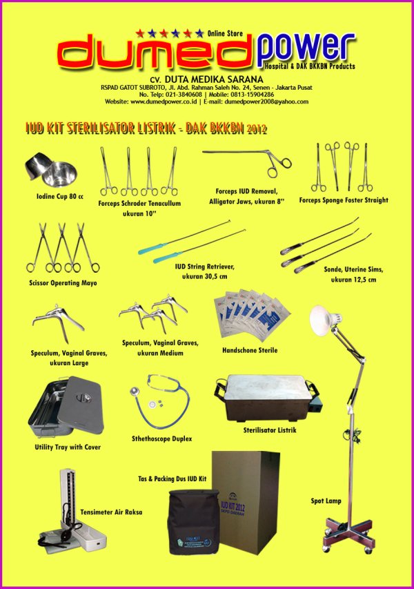 IUD Kit untuk Program DAK BkkbN 2013 terdiri dari 2 (dua) macam, yaitu: IUD Kit Sterilisator Listrik dan IUD Kit Sterilisator Non Listrik.